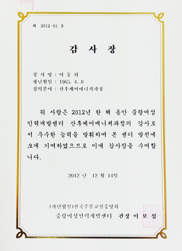 편안하고 건강하게 돌봐드릴 것을 약속드립니다.